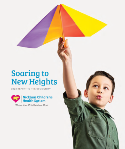 2022 was without a doubt a banner year for Nicklaus Children’s Health System, as we soared to new heights in fulfilling our commitment to the children and families of South Florida and beyond. We were honored in 2022 to be ranked by U.S. News & World Report as a number one children’s hospital in Florida, a recognition that shines a light on our clinical leadership and commitment to providing the best possible care to the region’s children. As further testament to our national pediatric care standing, we were selected among the nation’s top children’s hospitals for quality and safety by the Leapfrog group. In addition, based on staff surveys conducted nationally, Newsweek selected Nicklaus Children’s among the nation’s “Most Loved Workplaces,” an honor that is a measure of the respect, care and appreciation we demonstrate for those who serve the region’s children.