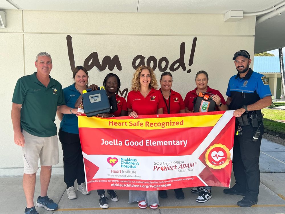 Nicklaus Children’s Hospital’s Heart Institute, a regional leader in the care of children with congenital heart defects, is proud to be the South Florida affiliate of Project ADAM, an organization dedicated to offering free life-saving training and education to counter sudden cardiac arrest. Through the program, staff at participating schools learn how to perform CPR, use automated external defibrillators (AED), and develop a site-specific response plan. Participating schools receive a two-year Project ADAM recognition and commit to performing a minimum of 1 drill annually, upon completion of training.