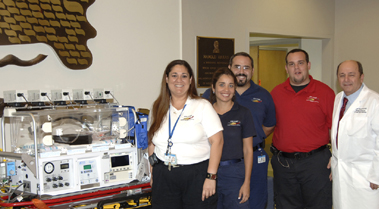 Thanks to the generosity of its employees and a matching gift from the hospital administration, Miami Children’s Hospital recently acquired the state’s first lightweight transport incubator capable of high frequency ventilation. The incubator will be used by the hospital’s LifeFlight™ Critical Care Transport Program to bring critically ill newborns to the hospital for life-saving care.